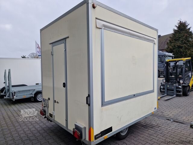 Multi VKE 1025/206, 250 x 206 x 230 cm, Verkaufsanhänger, Fahrgestell ohne Aufbau, zulässiges Gesamtgewicht 1000 kg, einachsig, Niederflurfahrgestell, gebremst, Sandwichbauweise aus Polyester mit abschließbarer Verkaufsklappe mit Öffnungshilfe, Hecktür, Kurbelstützfüßen, Stützrad etc.